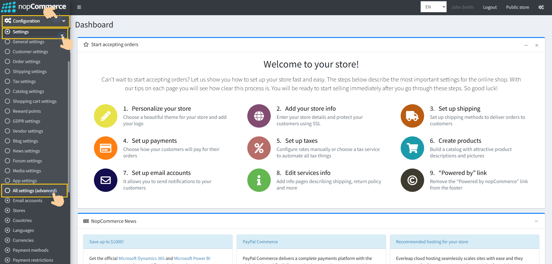 2. In the search box, type setting name → abandonedcartsettings.producthtml