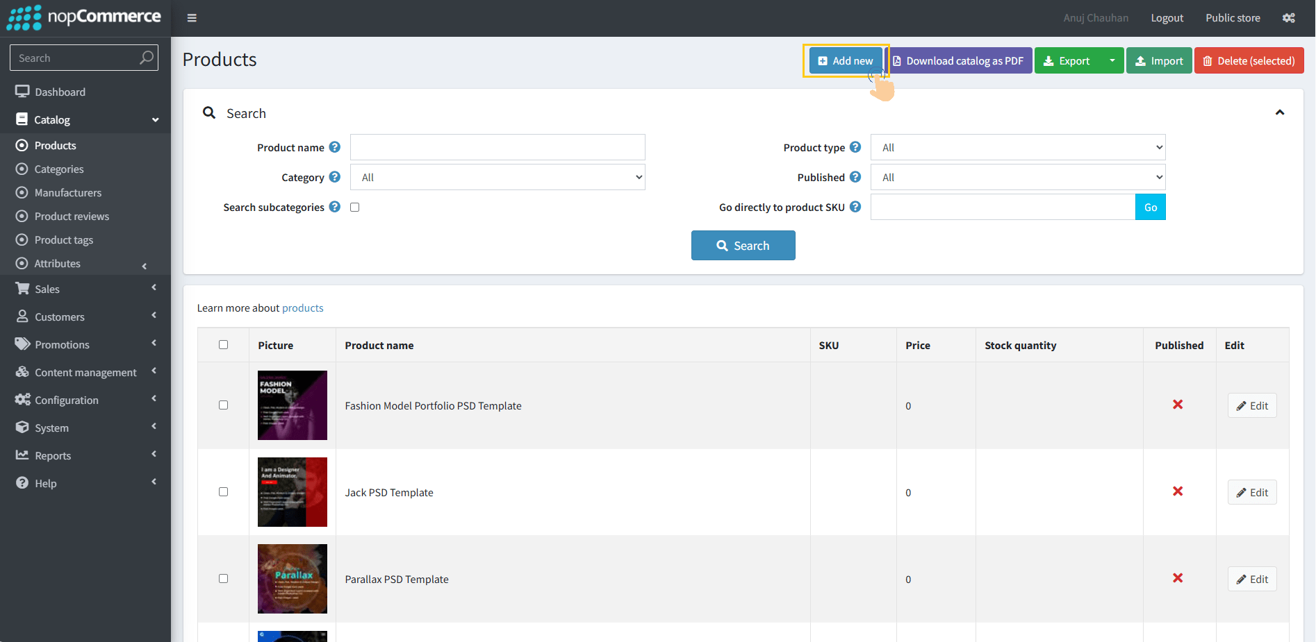 2. Click the Add New button to create new Digital Downloadable Product to your store.