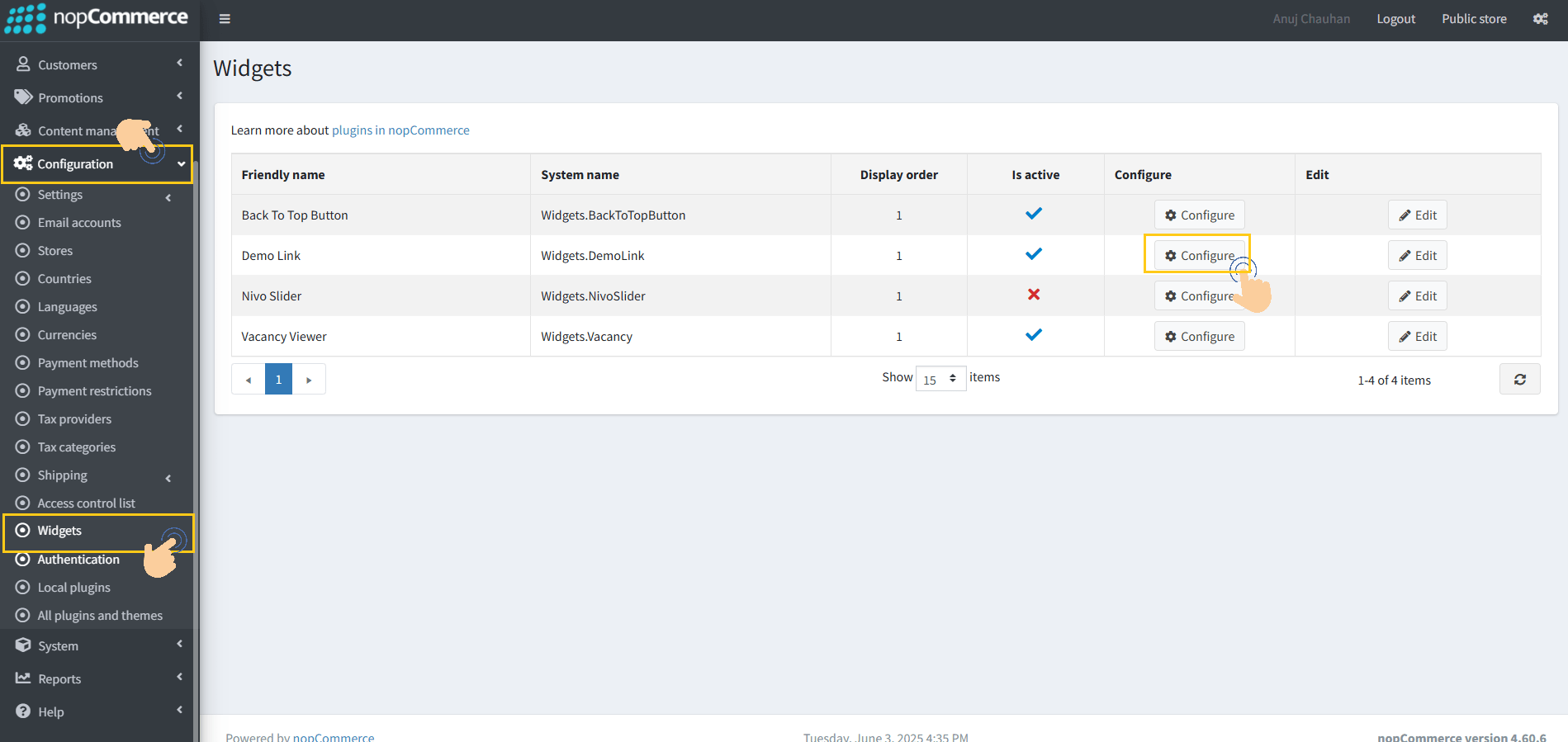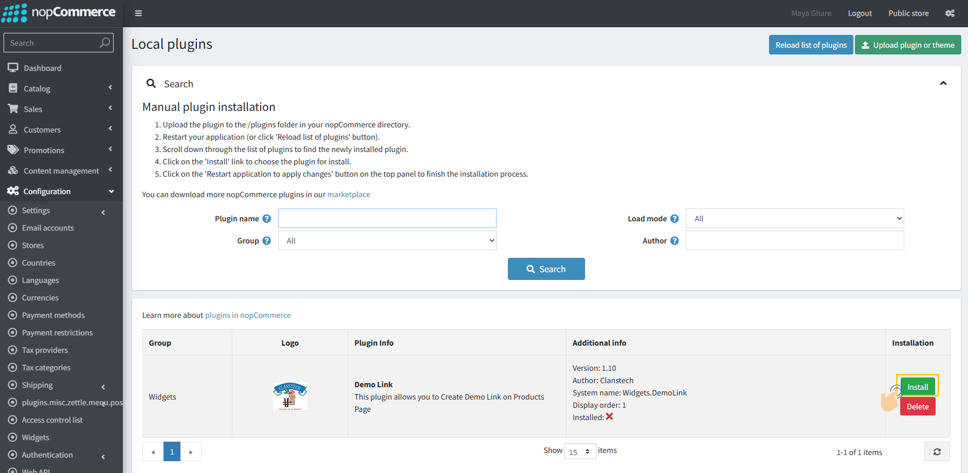 9. To get this plugin, Search by the group name as Widgets in Configuration → Local Plugin.