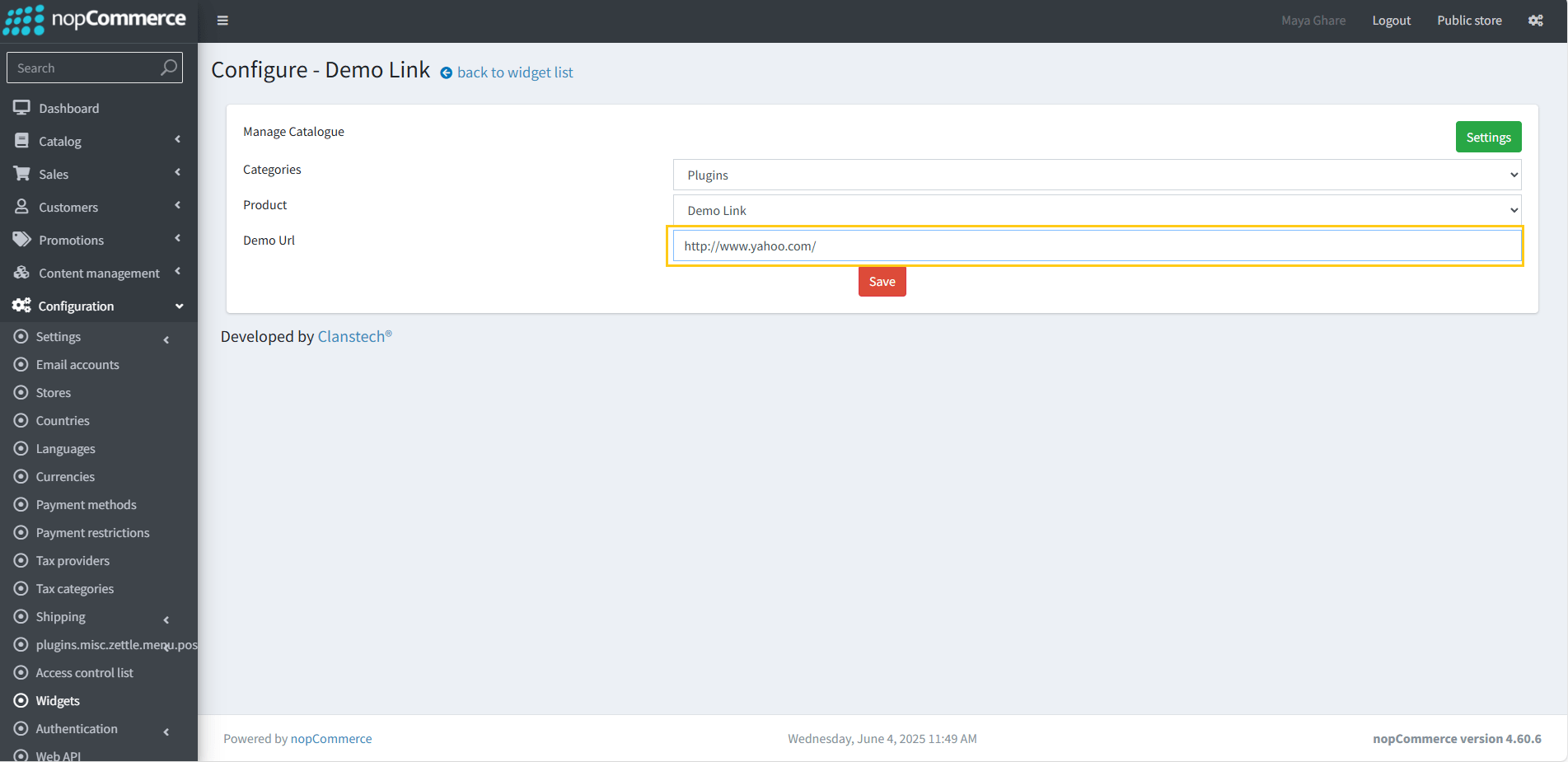 6. To change the link, enter a new Demo Url in provided field.