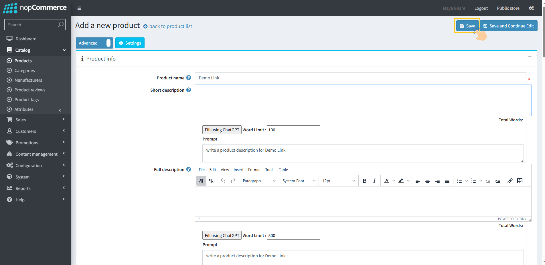 3. In the product destails page section, enter the Product Name, Short Description, and other required derails.