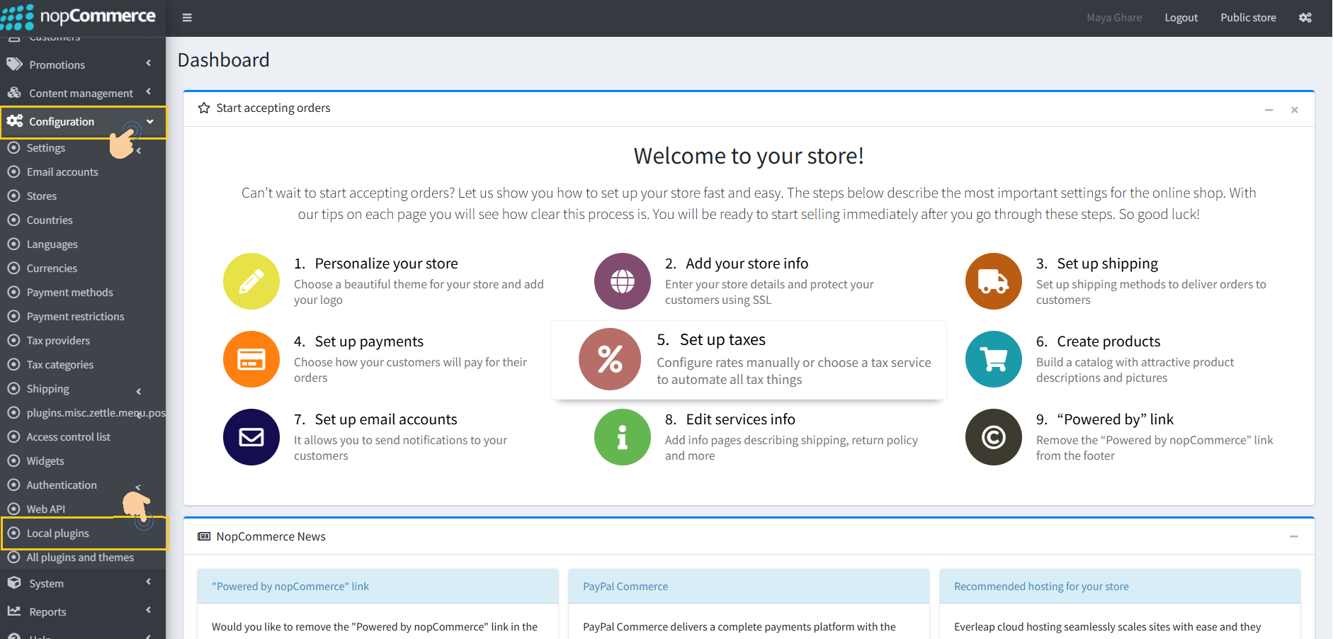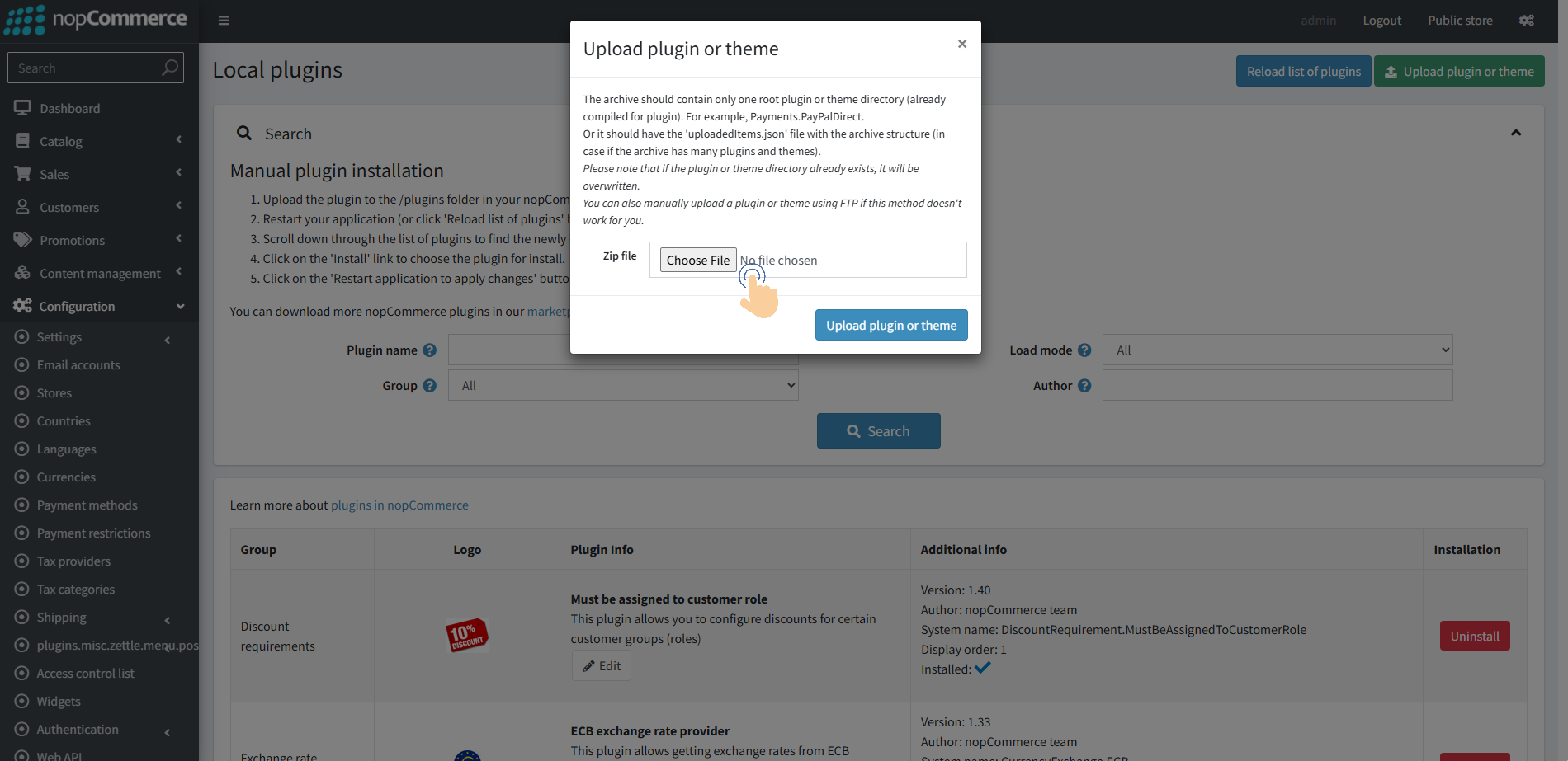 2. Go to Configuration → Local plugins from the Admin dashboard.