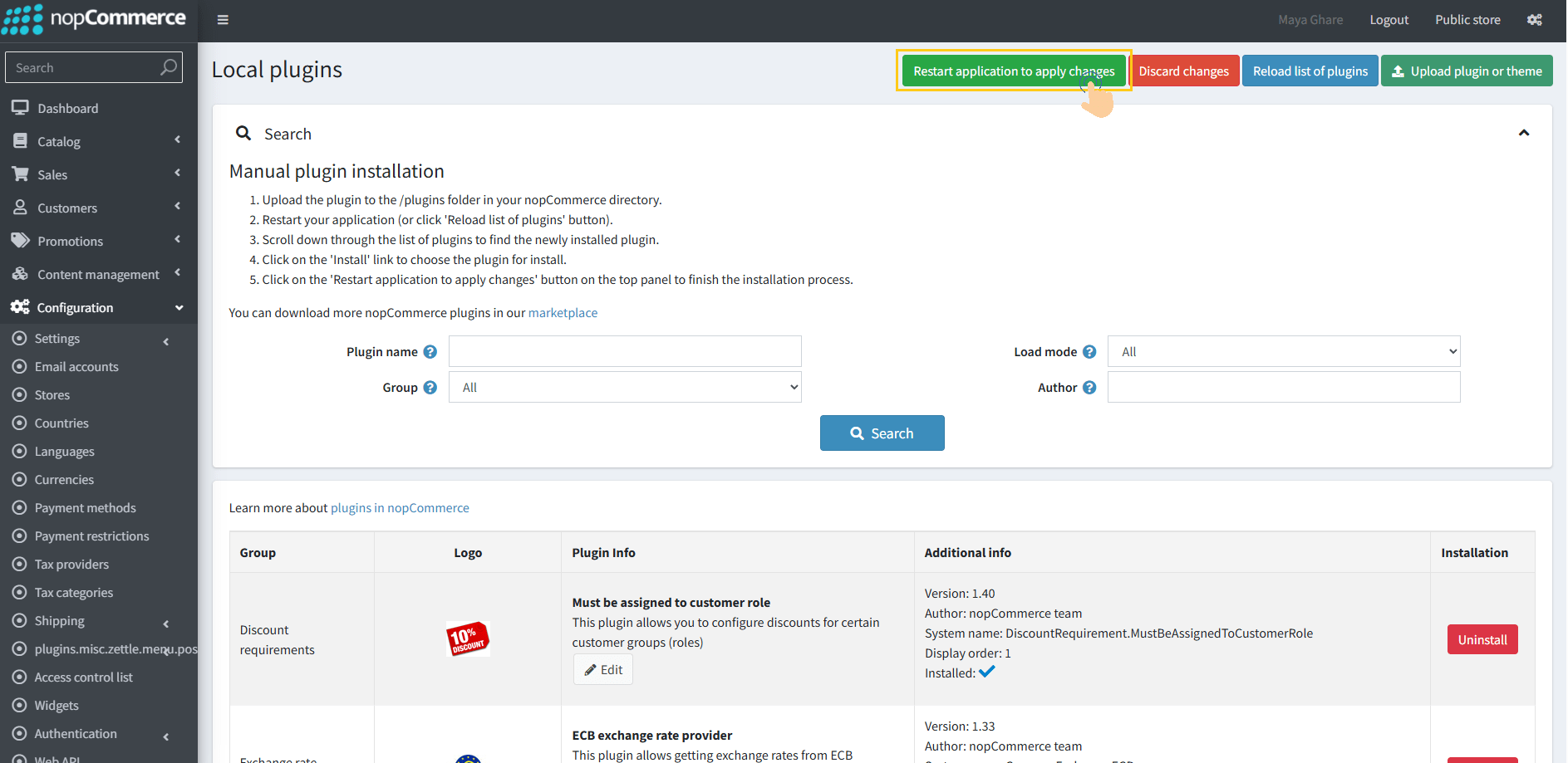 12. Click the "Restart application to apply changes" button in top menu.
