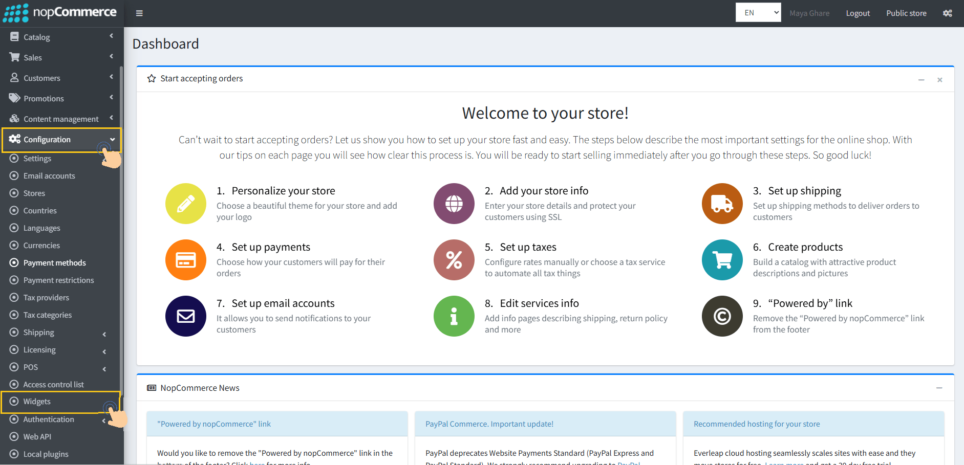 1. Go to the Configuration → Widgets.