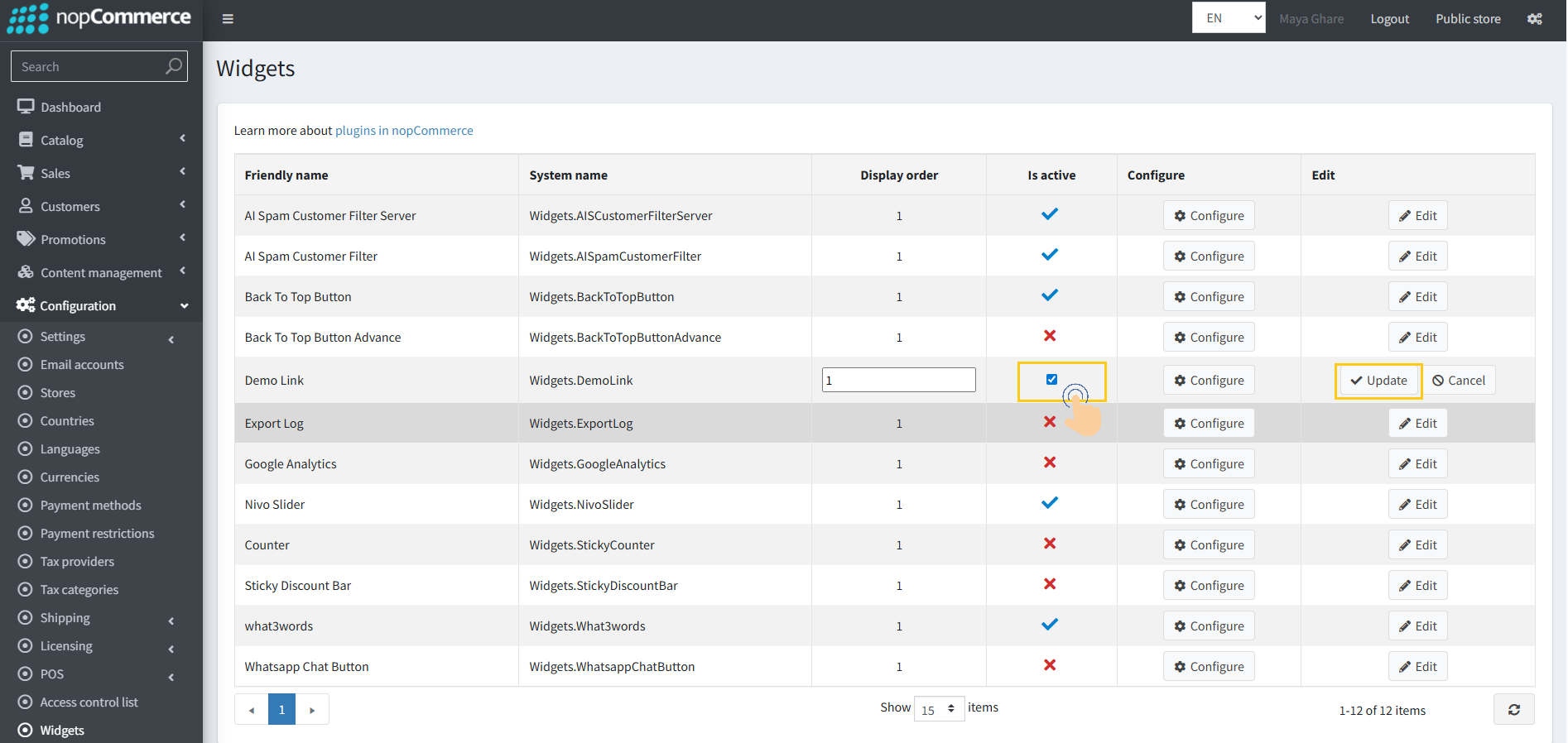 3. Select the Is active checkbox and Click on the Update button to Enable the plugin.