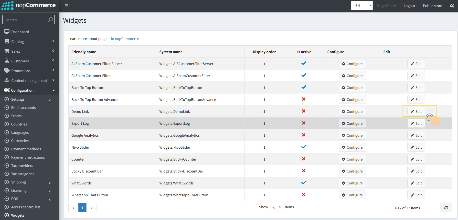 2. Click the Edit button next to the Demo Link Plugin.