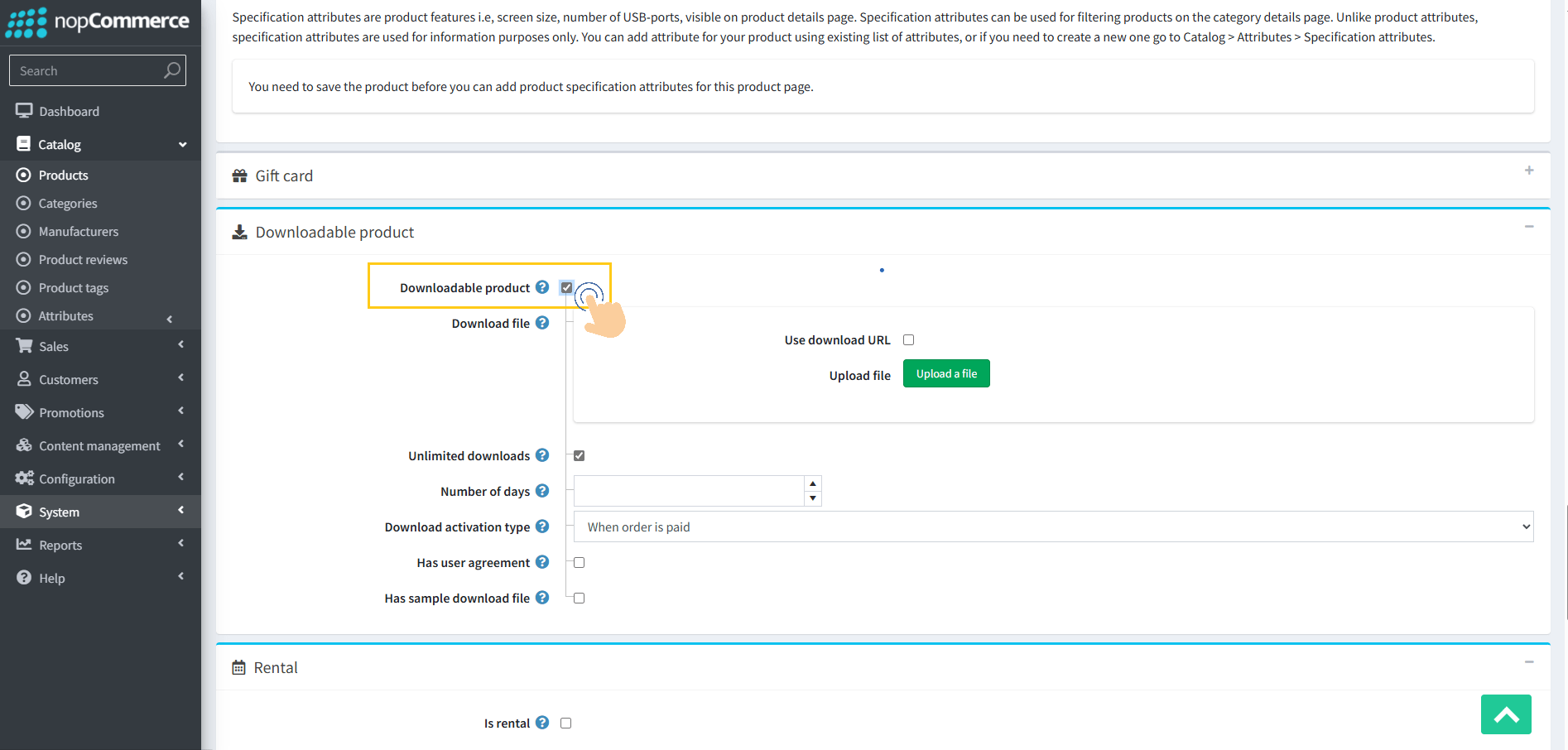 Before proceeding with configuration, make sure to create and save a downloadable product by enabling the “Downloadable Product” option in the product details.